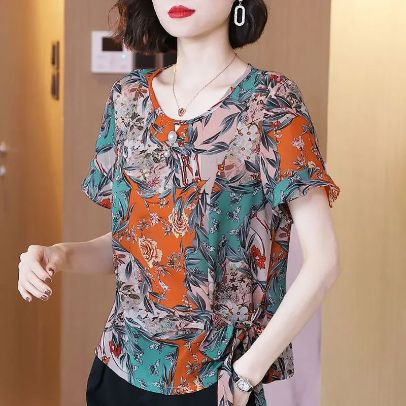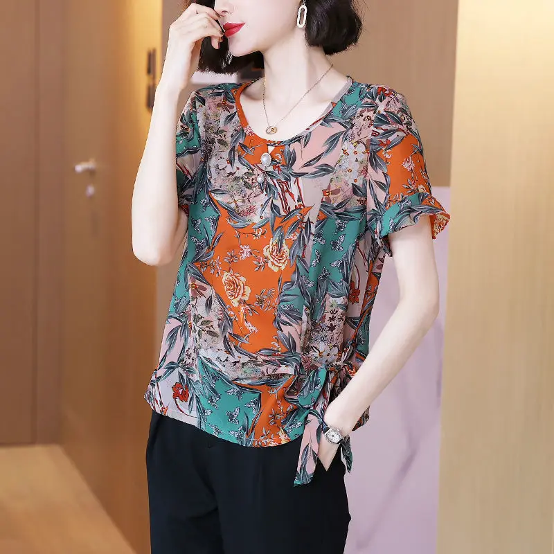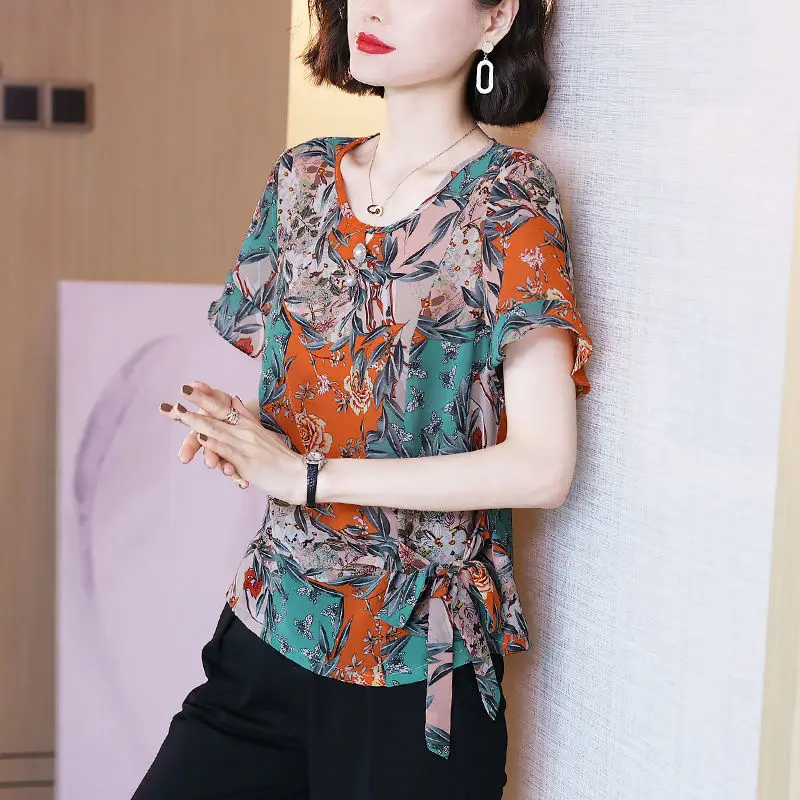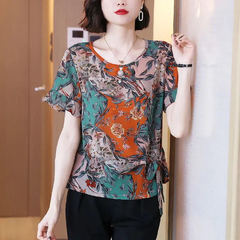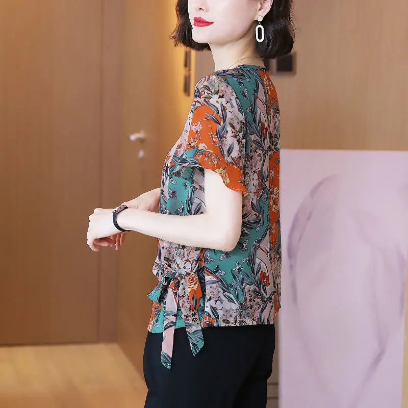 Stylish Casual Printed Shirt Female Commute Ruffles Spliced Elegant Drawstring Summer Chic Three-dimensional Decoration Blouse - Купить с бесплатной доставкой