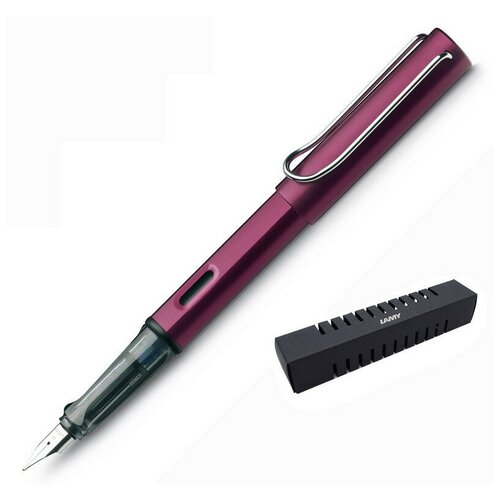 Stylo plume Lamy Al-Star violet (029) Version en métal du modèle emblématique Lamy Safari appelé Lamy Al-Star. Corps et capuchon en aluminium anodisé. Poignée ergonomique qui permet à vos doigts de prendre la bonne position lors de l'écriture. Fabriqué en plastique transparent. Le clip métallique sur le capuchon a la forme d'un trombone. Une fenêtre sur le corps permet de contrôler la consommation d'encre. Plume en acier remplaçable. Le stylo plume s'utilise avec les cartouches d'encre Lamy T10 ou avec le convertisseur Lamy Z28 pour recharger l'encre d'un flacon Lamy T51 ou Lamy T52. Contenu : Coffret cadeau, cartouche d'encre bleue Lamy T10, mode d'emploi. Design : Wolfgang Fabian L'histoire de la marque Lamy remonte à plus de 80 ans et sa philosophie réside dans le slogan « Design ». Fabriqué en Allemagne'. L'entreprise a reçu plus de 100 prix de design parmi les plus prestigieux. Tous les instruments d'écriture Lamy sont fabriqués dans l'usine de Heidelberg (Allemagne).Stylo plume Lamy Al-Star violet (029) Version en métal du modèle emblématique Lamy Safari appelé Lamy Al-Star. Corps et capuchon en aluminium anodisé. Poignée ergonomique qui permet à vos doigts de prendre la bonne position lors de l'écriture. Fabriqué en plastique transparent. Le clip métallique sur le capuchon a la forme d'un trombone. Une fenêtre sur le corps permet de contrôler la consommation d'encre. Plume en acier remplaçable. Le stylo plume s'utilise avec les cartouches d'encre Lamy T10 ou avec le convertisseur Lamy Z28 pour recharger l'encre d'un flacon Lamy T51 ou Lamy T52. Contenu : Coffret cadeau, cartouche d'encre bleue Lamy T10, mode d'emploi. Design : Wolfgang Fabian L'histoire de la marque Lamy remonte à plus de 80 ans et sa philosophie réside dans le slogan « Design ». Fabriqué en Allemagne'. L'entreprise a reçu plus de 100 prix de design parmi les plus prestigieux. Tous les instruments d'écriture Lamy sont fabriqués dans l'usine de Heidelberg (Allemagne).