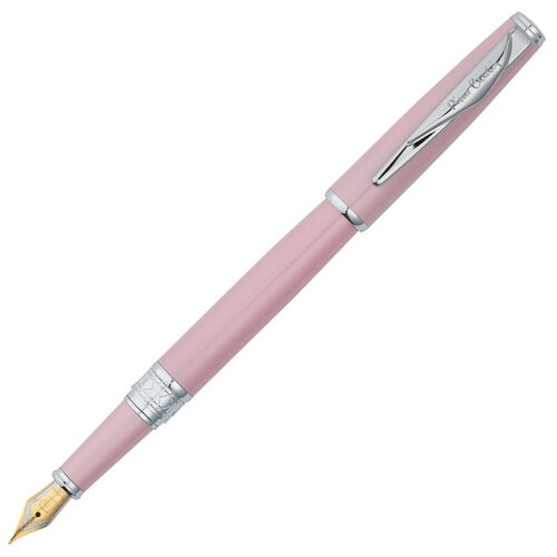 Matériau : laiton pour bijoux ; Type : plume ; Matériau du stylo : acier inoxydable ; Finition plume : or 18 carats ; Mécanisme d'ouverture : capuchon amovible ; Taille du stylo : M ; Épaisseur du trait : 0,5-0,59 mm ; Recharge : cartouches Pierre Cardin standards ou encre en bouteille à l'aide d'un convertisseur ; Épaisseur du boîtier : standard ; Longueur : 14 cm ; Couleur : rose, argent ; Série : Secret ; Fabricant : Pierre Cardin, France.