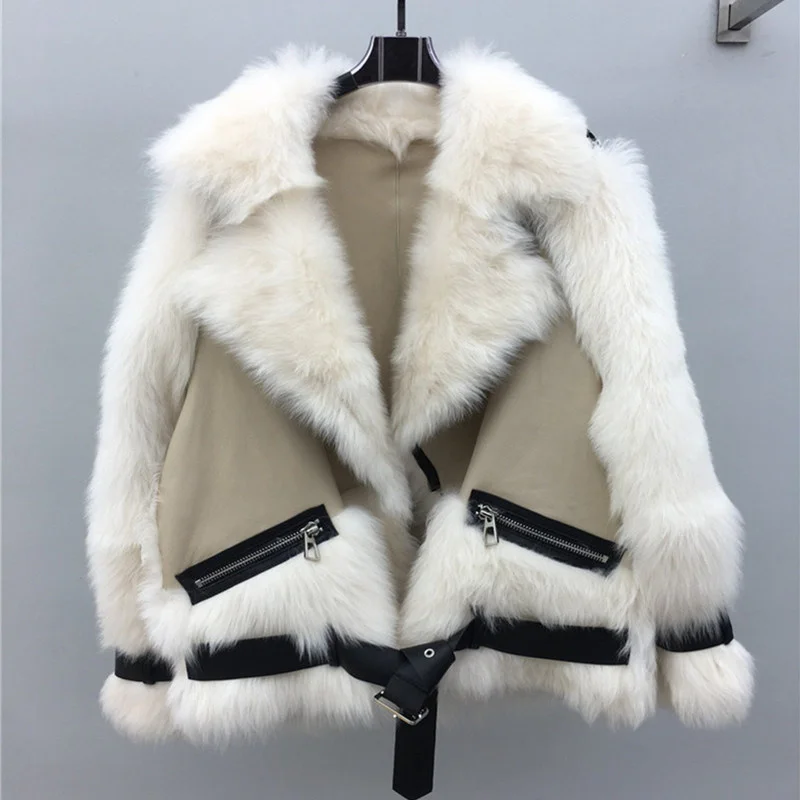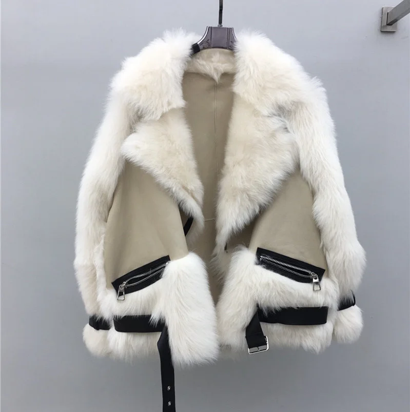 Womens Fur Integrated Jackets Lambswool Lapel Zipper Pocket Brown Fleece Coat Female 2023 Winter Thickened Warm Lady Outwear Bu 06 07