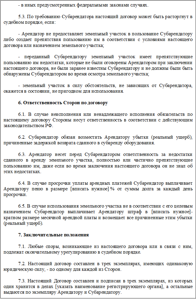 Субаренда законы