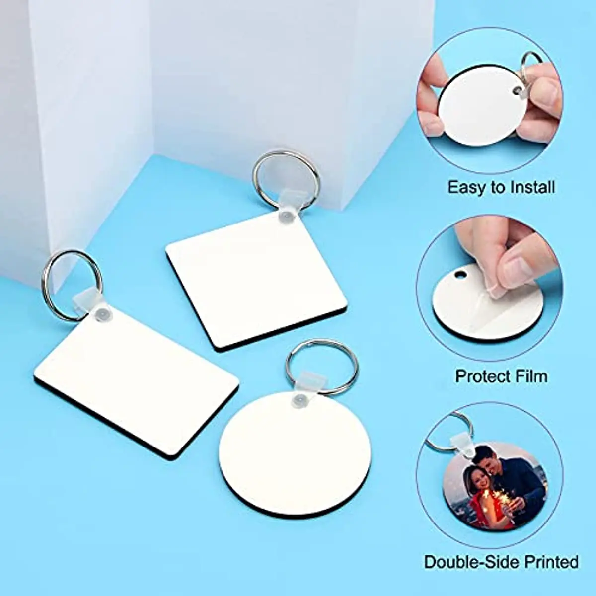 Sublimation Blank Keychain 30PCS Heat Transfer Keychain Double-Side Printed DIY MDF Blank Keychain (Square, Round, Rectangle) - Купить с бесплатной доставкой