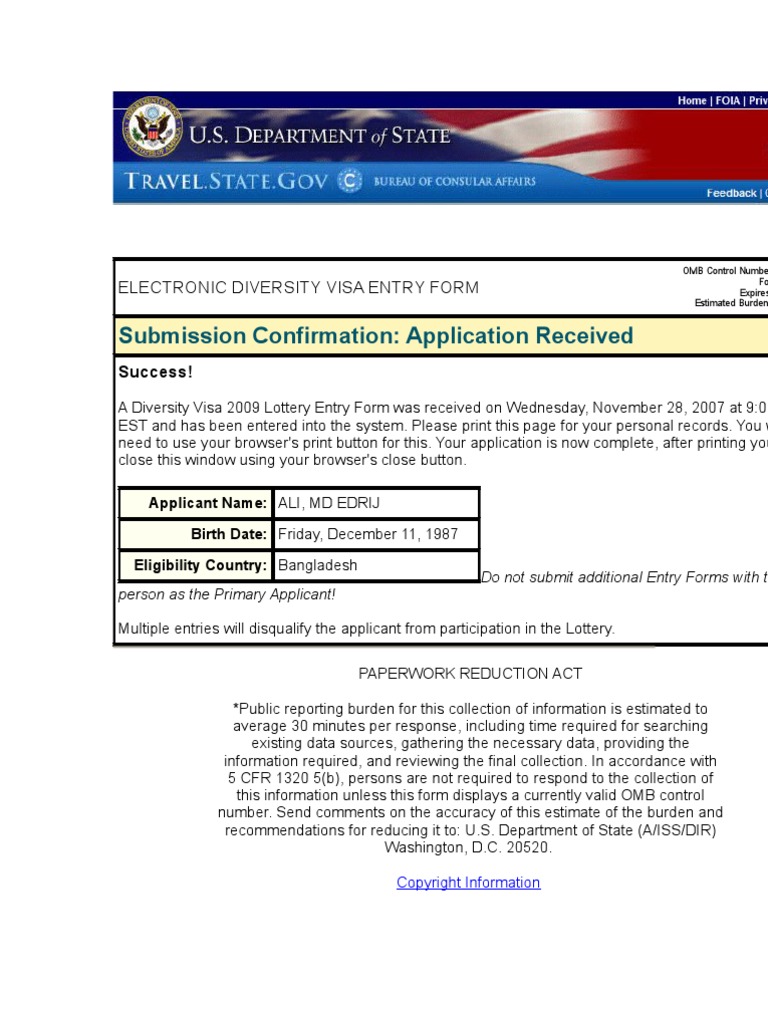 Submission Confirmation - Immigration into US