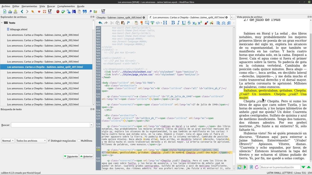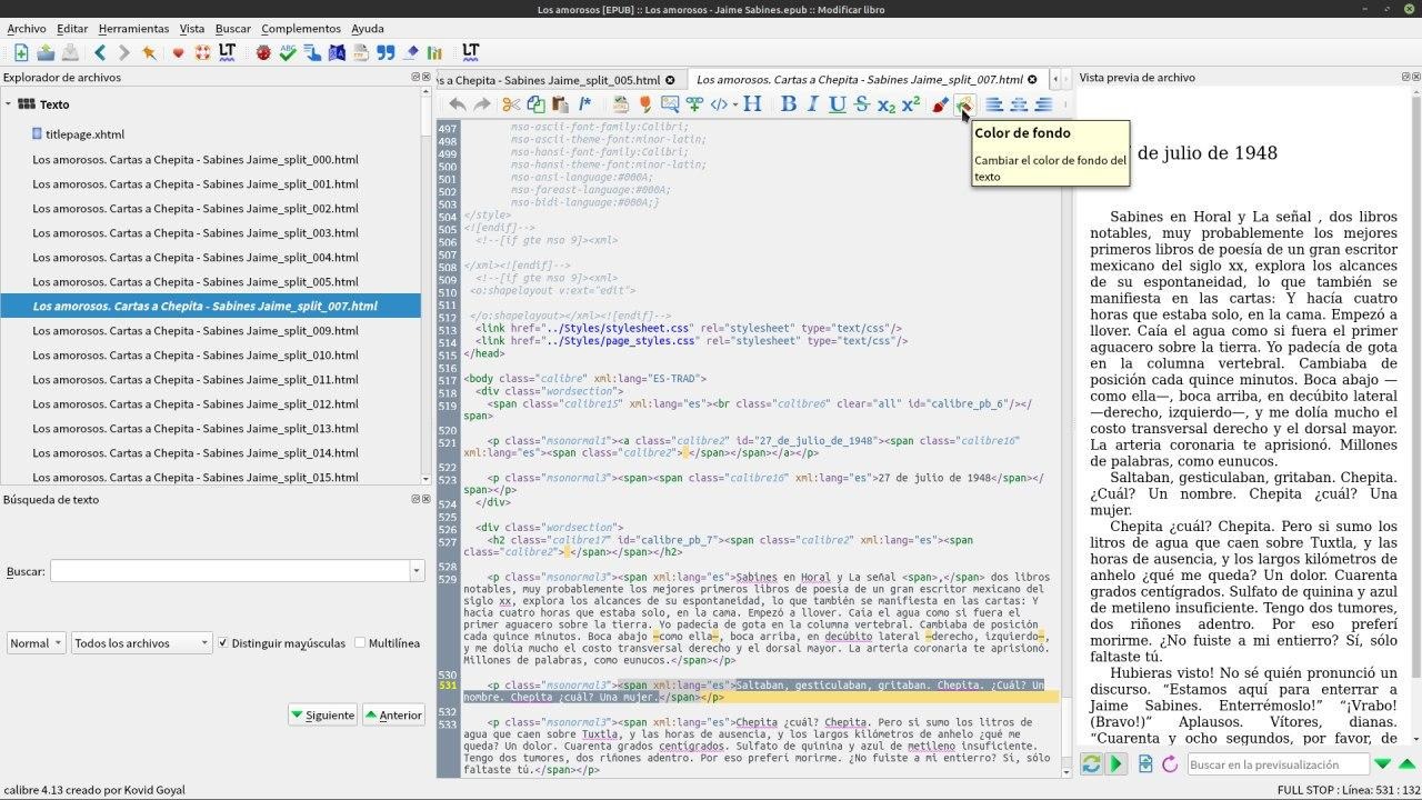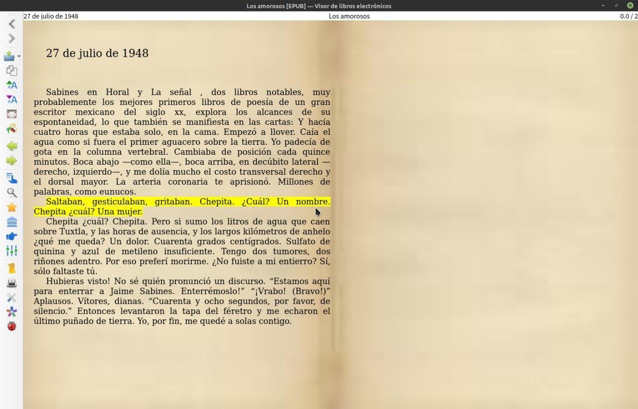 Abrimos el libro con el visor de Calibre y veremos que esta subrayado.