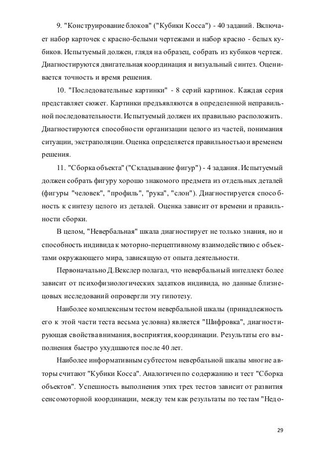Тест Векслера Описание методики