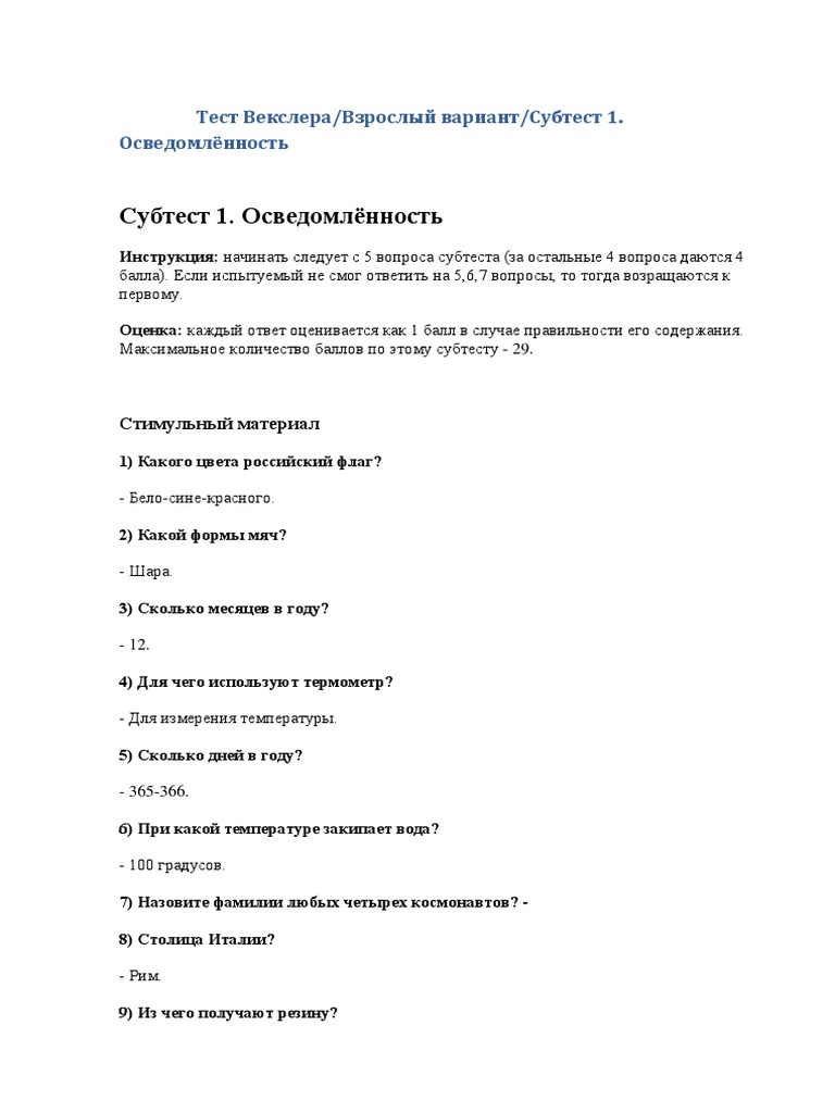 Тест Векслера/взрослый вариант (после 16 лет) | Форум