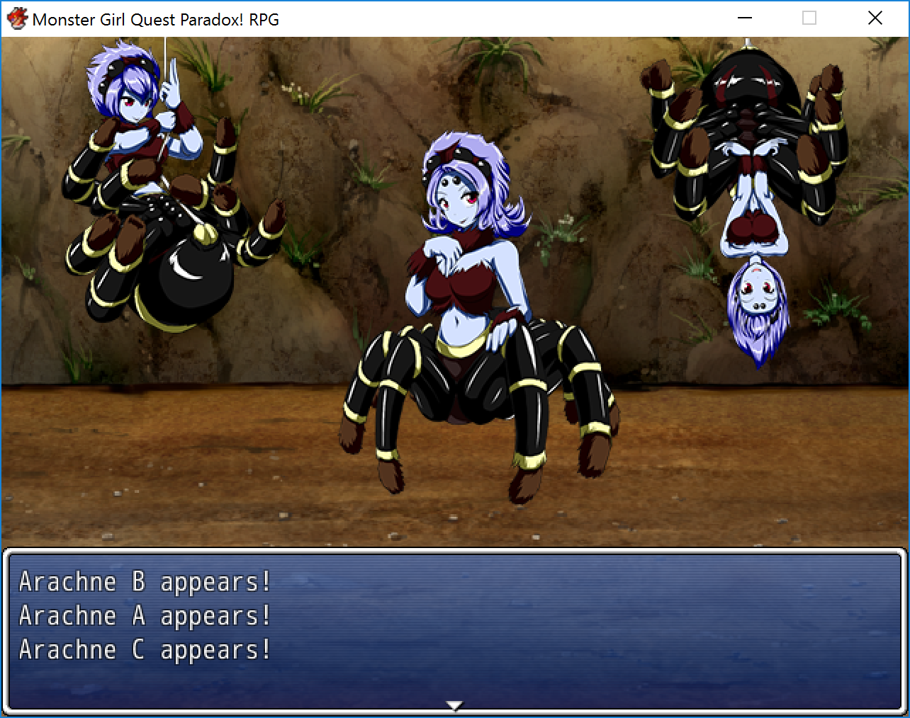 Arachne are one of the two races born between Vida, the Goddess of Life and Love, and Zanalpadna, the Evil God of Carapaces and Compound Eyes . They possess the upper body halves of beautiful women and the lower body halves of spiders . At present, they are divided into three types - large-build, medium-build and small-build - each with their own special characteristics . Immediately after . . .