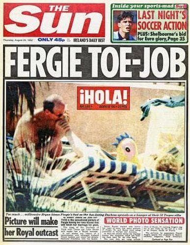 While still married to (but separated from) Prince Andrew, Sarah Ferguson made headlines when photos of her getting her toes sucked by her businessman boy toy John Bryan on vacay leaked.