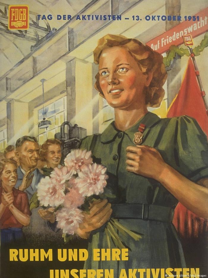 Как бы то ни было, но день 13 октября с тех пор стал в ГДР государственным праздником - Днем ударника. Такие праздники и такие рекордсмены были в каждой социалистической стране, и в каждой пропаганда создавала из них образцы для подражания. Сегодня эти герои забыты. Забыты ткачиха Луиза Эрмиш (Luise Ermisch), по методу которой в пятидесятые годы в ГДР призывали работать всю страну, и прядильщица Фрида Хокауф (Frida Hockauf), чей лозунг "Как мы сегодня работаем, так будем завтра жить!" висел чуть ли не в каждом цехе… Они канули в вечность - как и вся неэффективная социалистическая экономика с ее пропагандистской истерией вокруг перевыполнения плана.