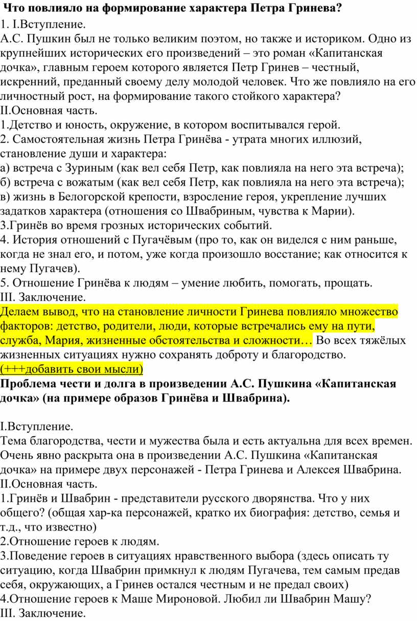 Судьбы героев капитанской дочки