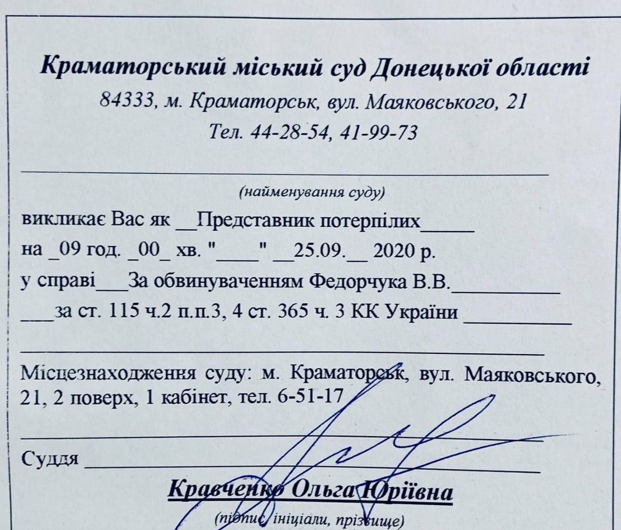Судебная повестка по уголовному делу форма