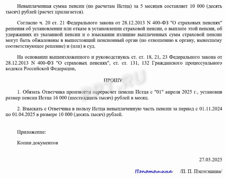 Судебные иски по пенсиям