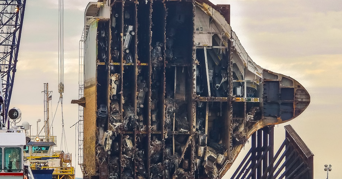 Также интересно Гигантская "пила" разрезала корабль с тысячами машин внутри: видео . Автомобили прибыли не в контейнерах, как американские "биты", а на платформах корабля (тип судна - Ro-Ro) .