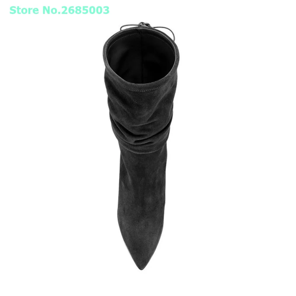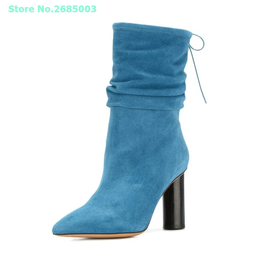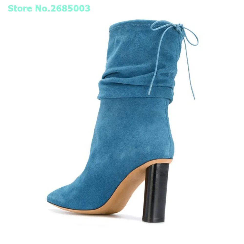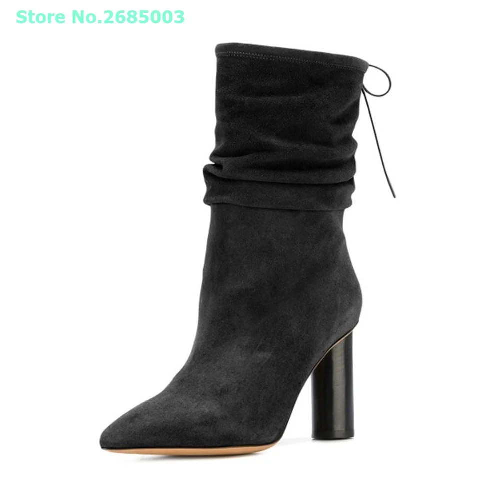 "Suede Pointed Toe Lace Up Boots Pleated Mid Calf Chunky Heels Solid Slip On Women Concise Autume Winter Party Dress Boots Shoes" * Buy Now Just For 92$