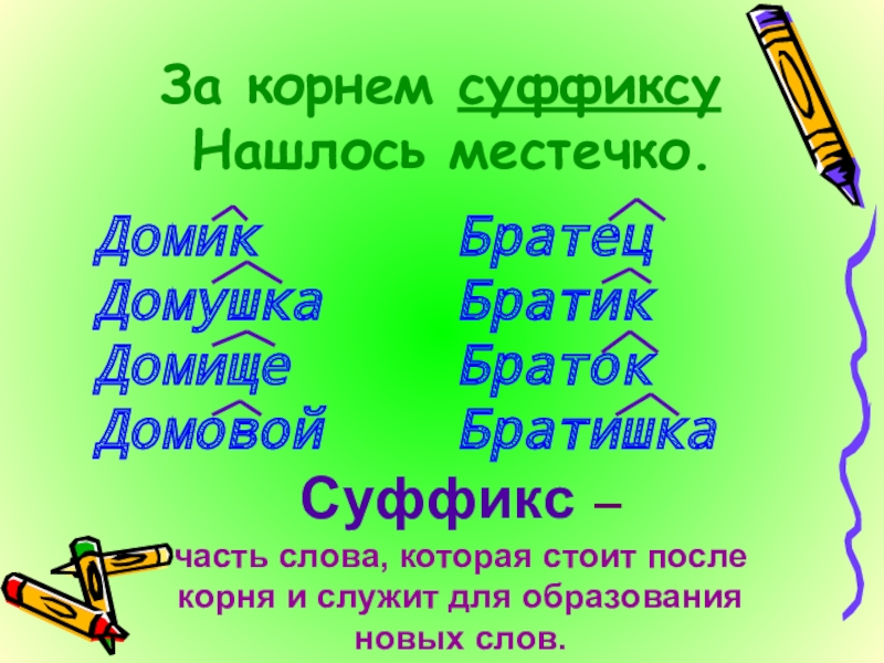 Суффикса стоящего после корня 100 фотографий