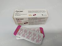 Как применять: дозировка и курс лечения Суглат рекомендуется принимать один раз в день независимо от приёма пищи . Таблетки следует проглатывать целиком, запивая водой . Начальная доза для взрослого пациента составляет 50 мг один раз в сутки . При необходимости возможно увеличение дозы до 100 мг (2 таблетки по 50 мг) .