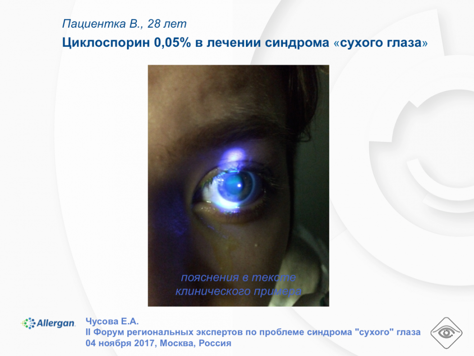Сухой глаз, симптомы и лечение которого рассматриваются индивидуально, может приводить к дегенеративным процессам в конъюнктиве и роговице органа зрения .