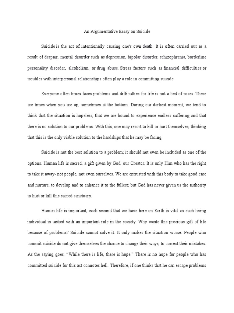 Persuasive Essay On Suicide Prevention - 1502 Words | Bartleby