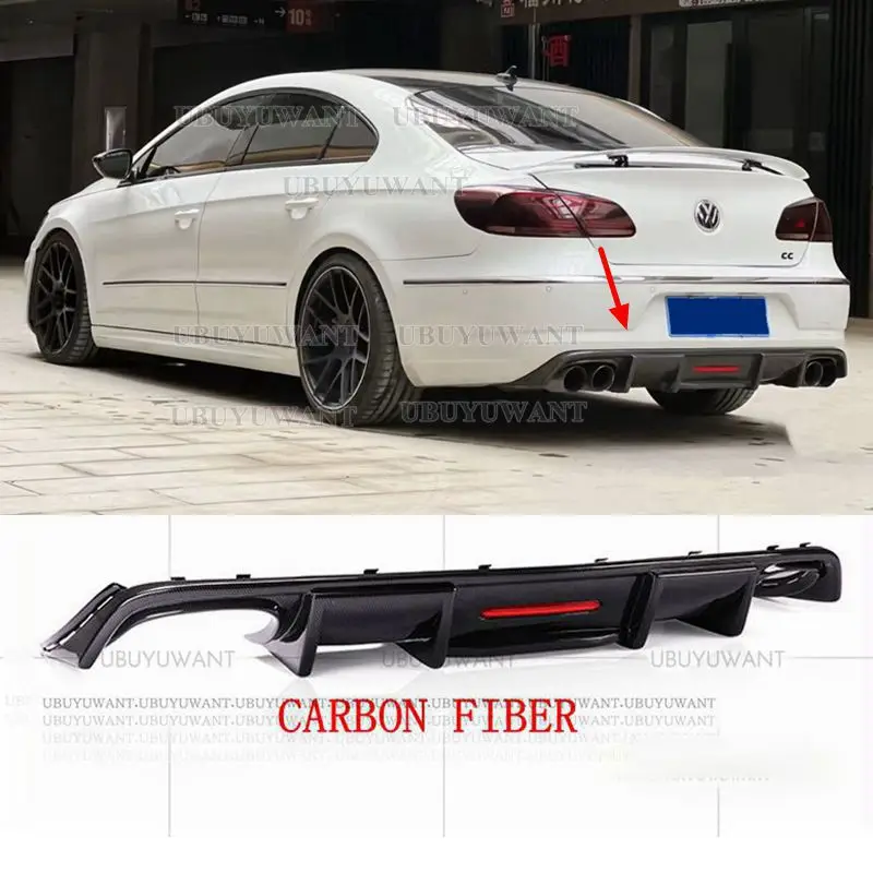 Suitable For Volkswagen Passat CC Spoiler 2009-2017 Shark Style with LED Light Diffuser Bumper Guard Carbon Fiber Rear Lip - Купить с бесплатной доставкой