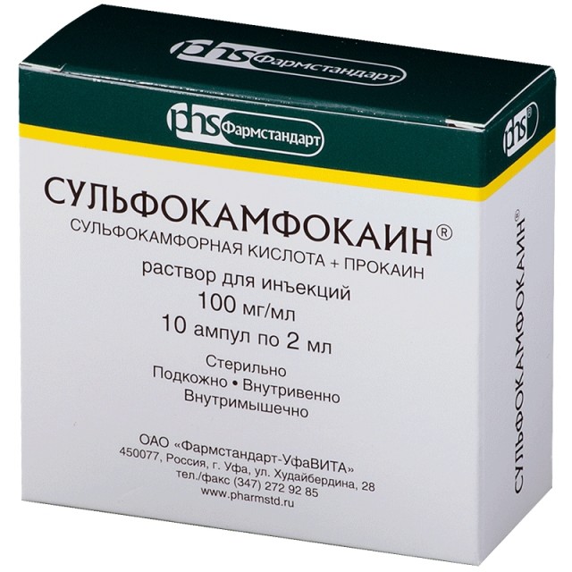 СУЛЬФОКАМФОКАИН раствор для инъекций 100 мг/мл амп . 2 мл №10 інструкція | відгуки . . .