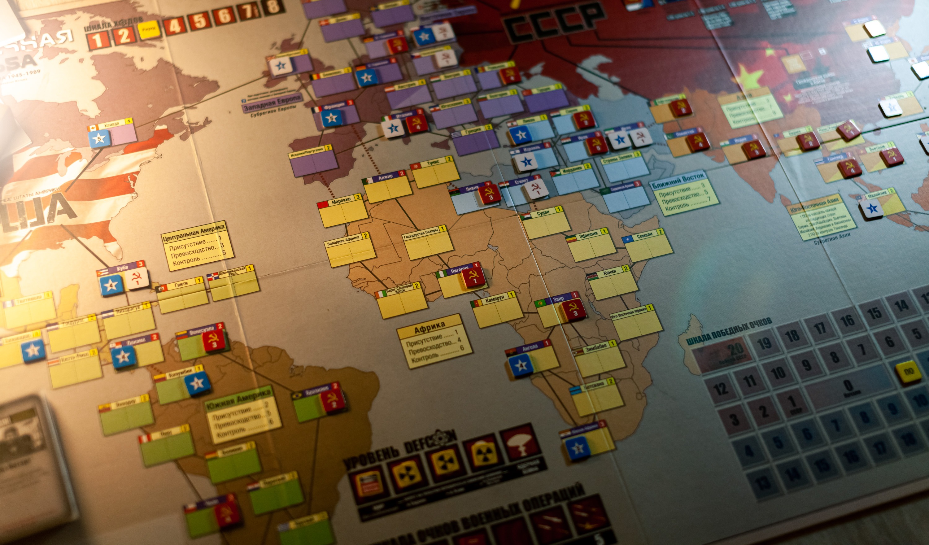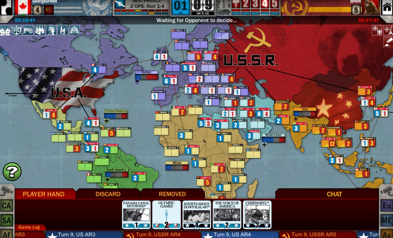 - Играя за Америку, иногда стоит вложиться в неключевые страны раньше. Да, их сможет перевернуть СССР вне дефкона, но тогда у вас будет что переворачивать и получать очки военных операций.