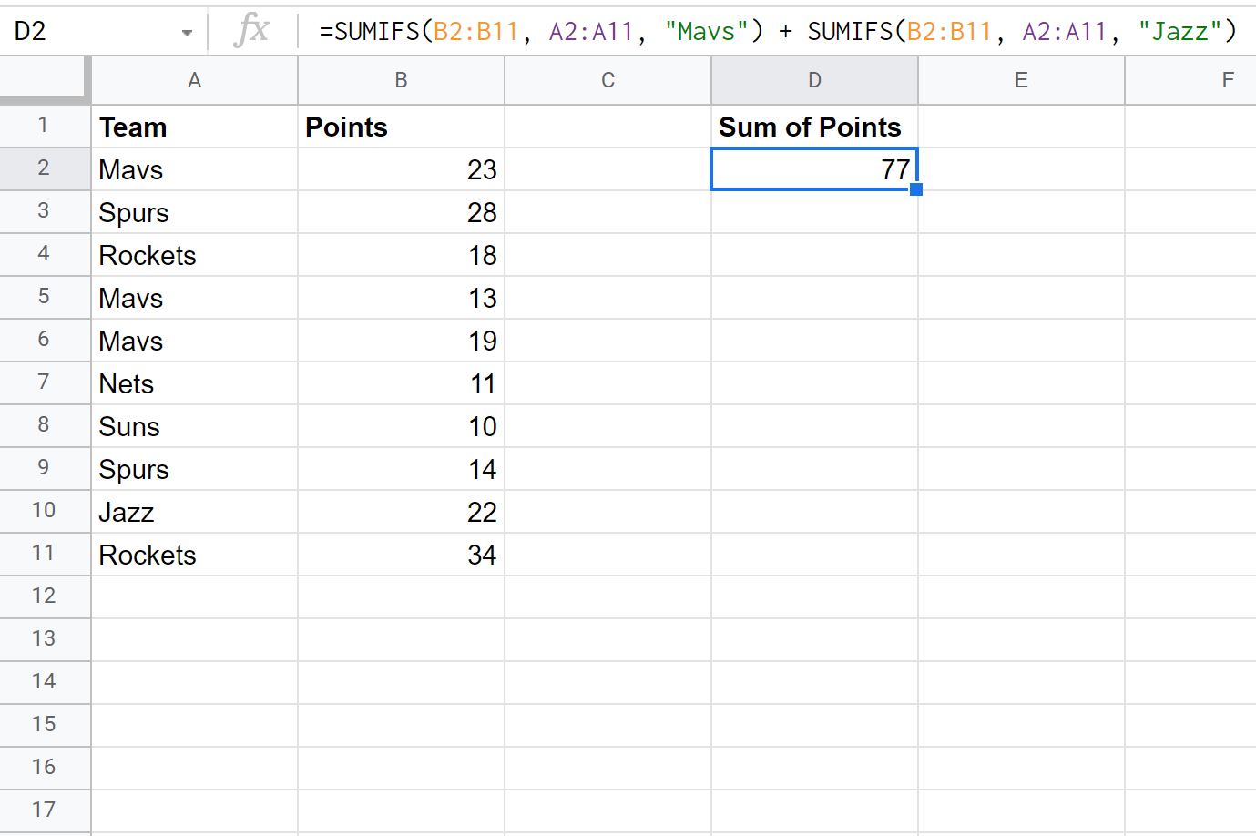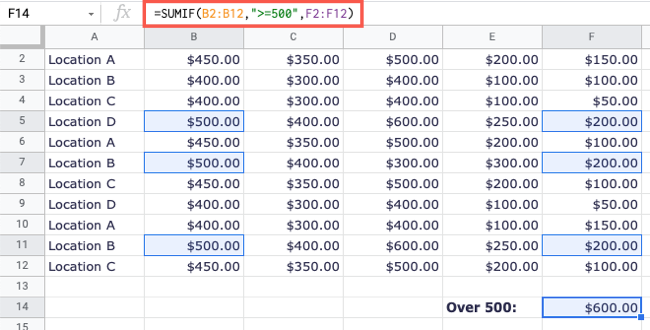Sumif в гугл таблицах