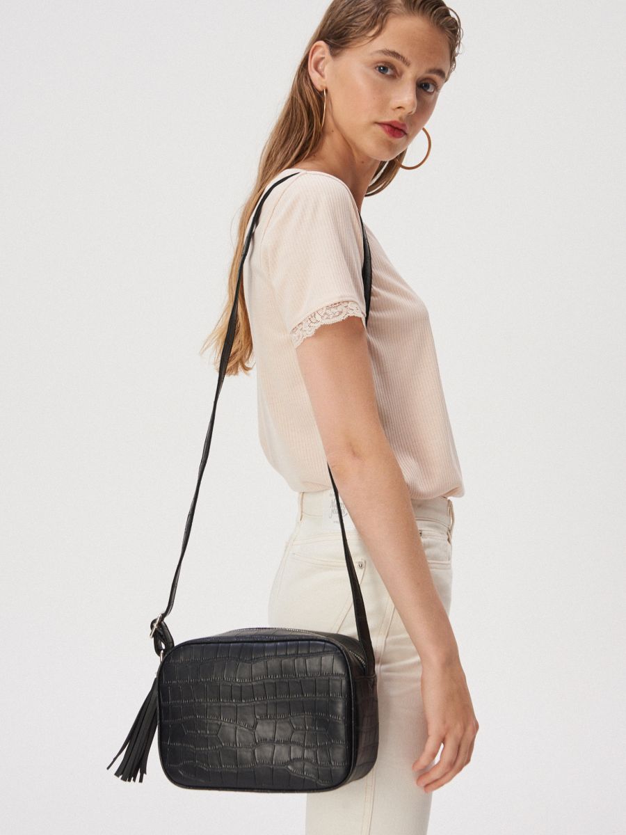 Сумка через плечо: Женская черная сумка из натуральной . . .