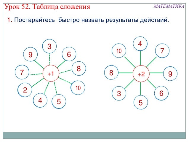 Таблица сложения чисел