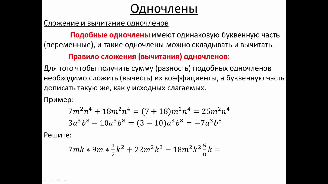 Сумма или разность одночленов 132 фотографий