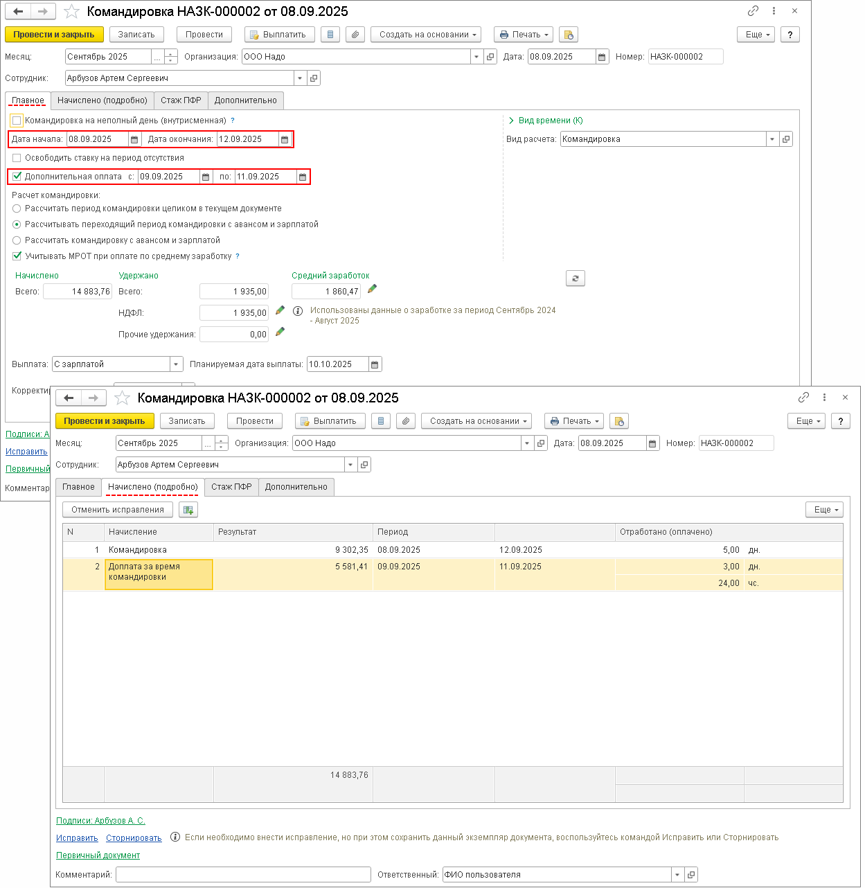 Сумма командировочных 2025