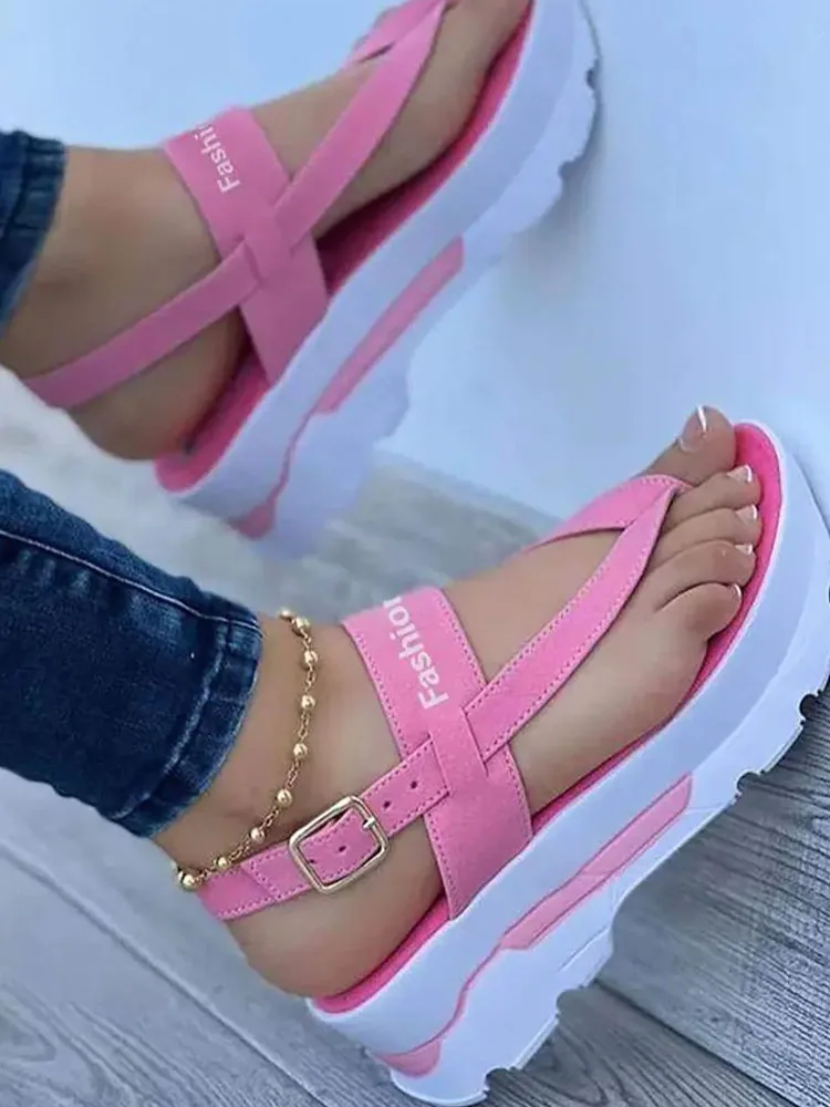 «Summer Beach Wear Shoes Plus Size Pu Contrast Flat Going Out Toe Post Letter Pattern Buckled Platform Sandals» по лучшей цене на рынке! Всего за 29$ (2755рублей)