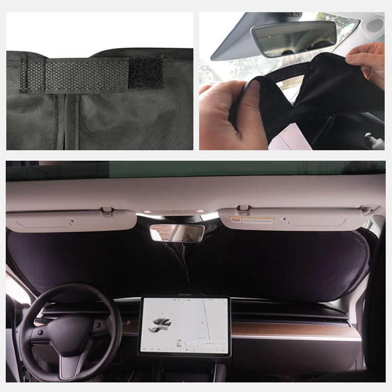Summer Car Windshield SunShade Covers Portable Car Front Windshield UV Rays Protector with Storage Bag for Tesla Model 3 Y - Купить с бесплатной доставкой