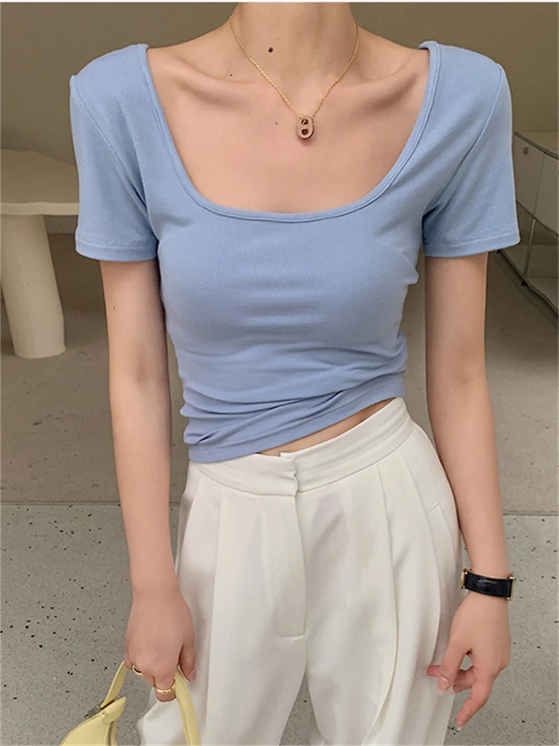 KpkmkMWIЗдесь вы сможете купить Summer Knitted Cotton Square Collar Crop Tops Raglan Short Sleeve Slim Soft Simplicity Solid Comfortable For Female Blouses с бесплатной доставкой до вашего почтового отделения.