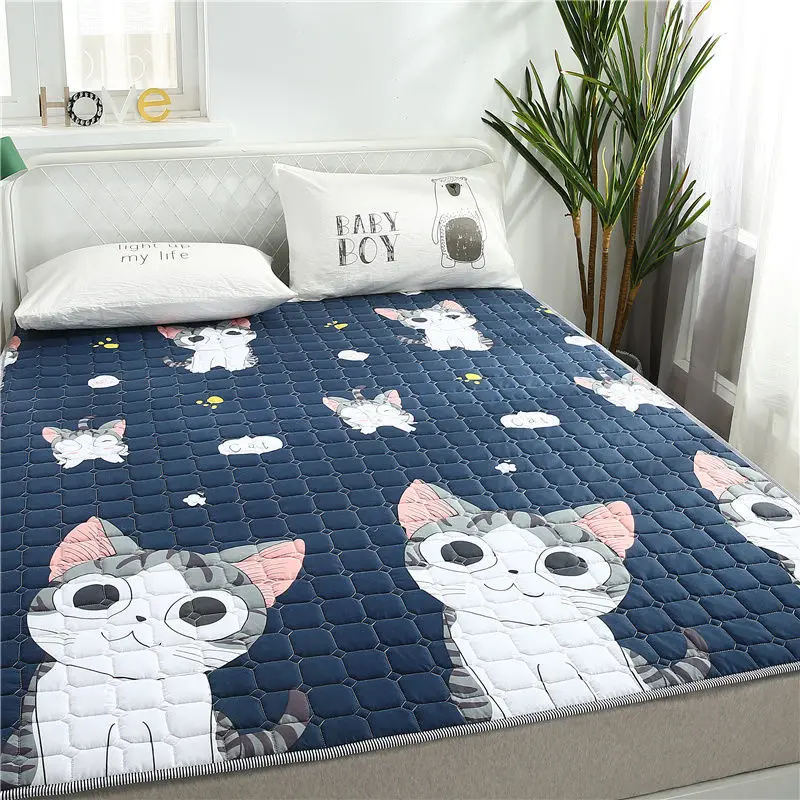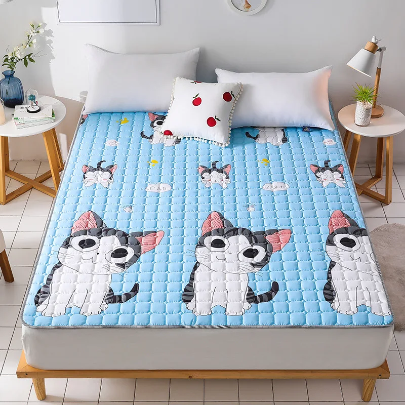 "Summer Mattress Cover Folding Sleeping Bed Cover Skin-friendly Bed Protection Anti-skid Washable Sleep Mat Cartoon Solid" * Buy Now Just For 19$