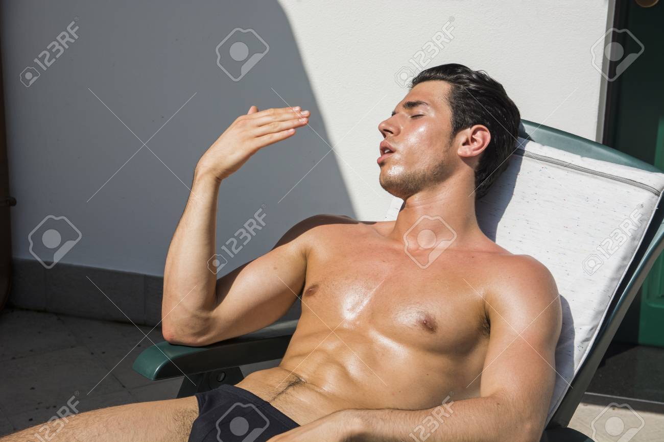 Sunbathing and taking a hard penis