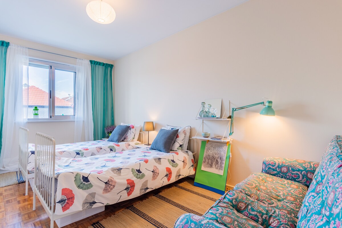 This apartment is located in Paranhos near Covelo garden . It is on the top floor facing south all its rooms have windows and there are 2 balconies . 4th floor, No lift! It has a kitchenette, dining area and living area with a sofa and a working area . It has got a balcony . There is a high speed WiFi internet connection . The bedroom has a king size bed, a wardrobe and chest of drawers . It has two . . .