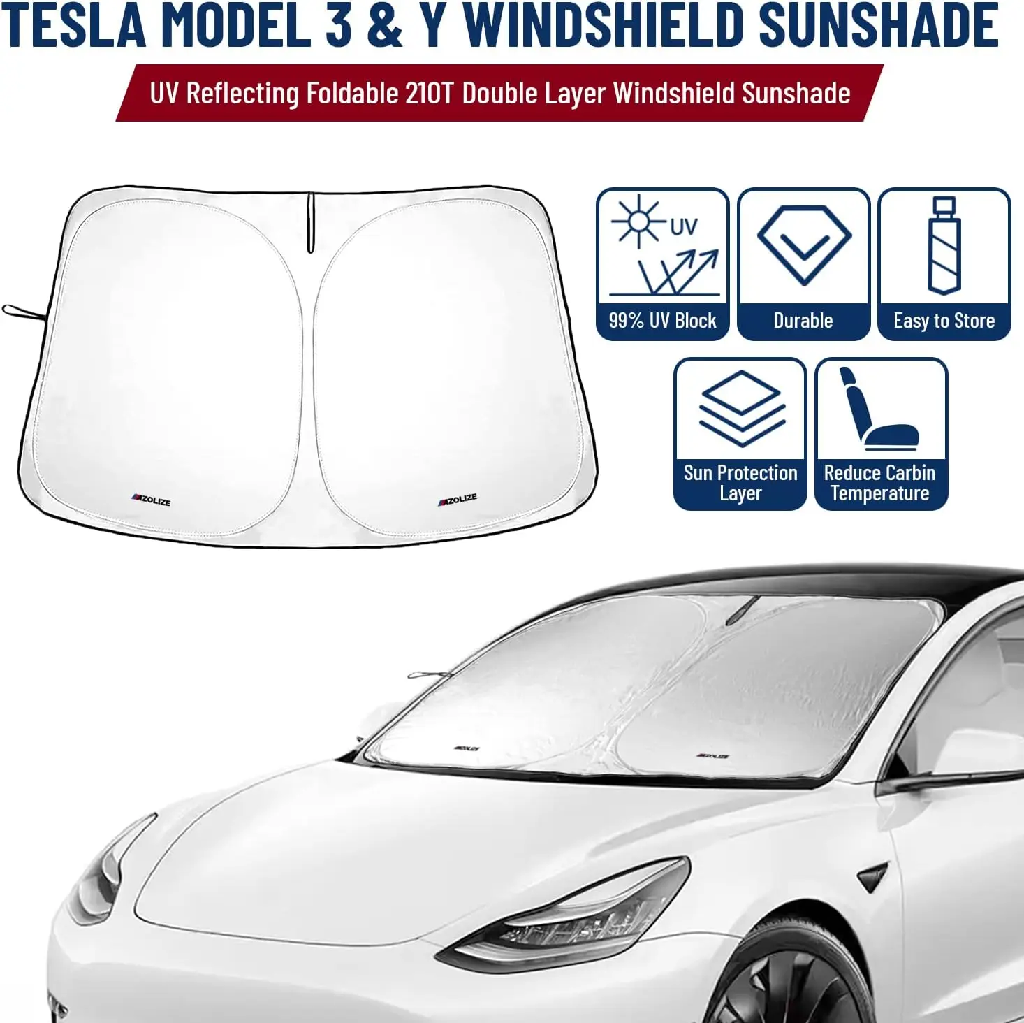 RoExkxgbZHere you can buy Sunshade Designed for Tesla Model 3/Y Exclusively Front Windshield Double Layer Light Blocking Fabric Foldable SunShade with Bag with free delivery to your post office.