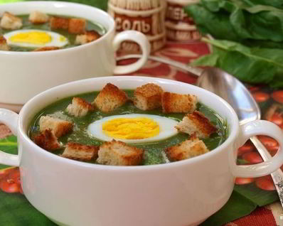Вариант 2 . Суп-пюре из шпината с яйцом и зеленью: «быстрый» рецепт . Тем, кто любит низкокалорийную пищу и не желает долго стоять у плиты, очень понравится суп-пюре из шпината, приготовленный «быстрым» способом .