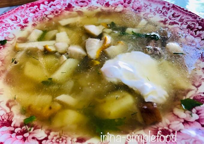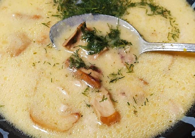Суп с лисичками и сыром 4 .8 2 . Это очень простой рецепт супа с лисичками и сыром . Уверена, вам он очень понравится: сытный, но при этом очень нежный .