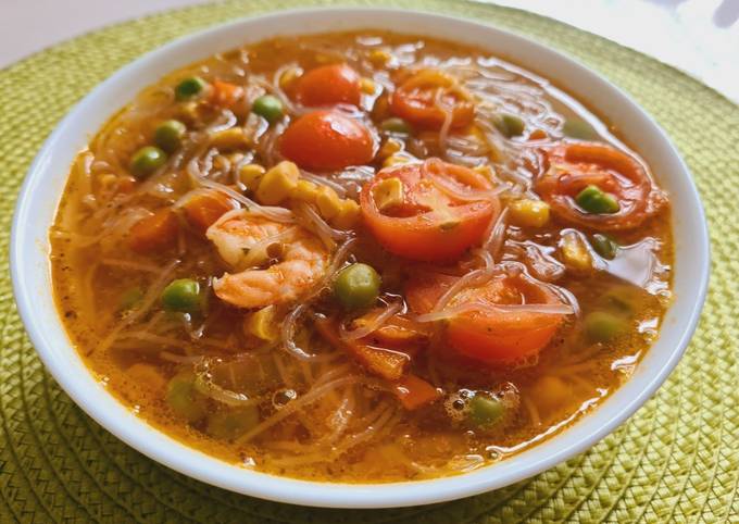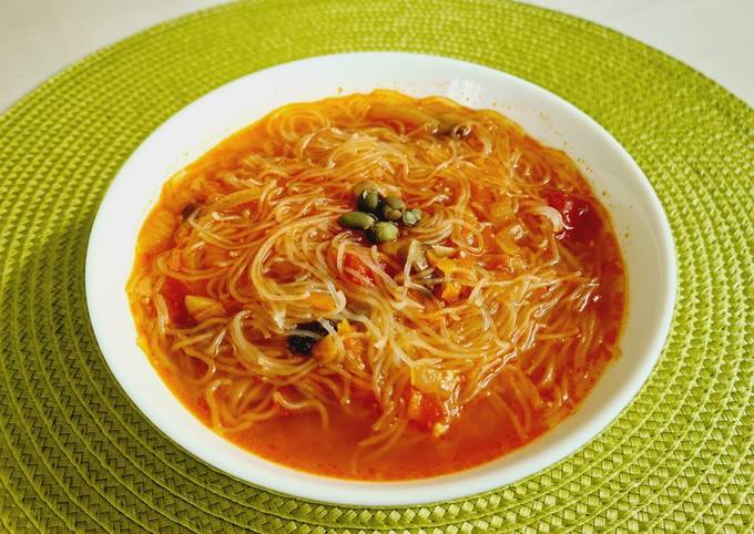 Супы с фунчозой можно варить с овощами и грибами, с мясом и с морепродуктами . Нотку азиатской кухни добавит чили, имбирь и кинза .