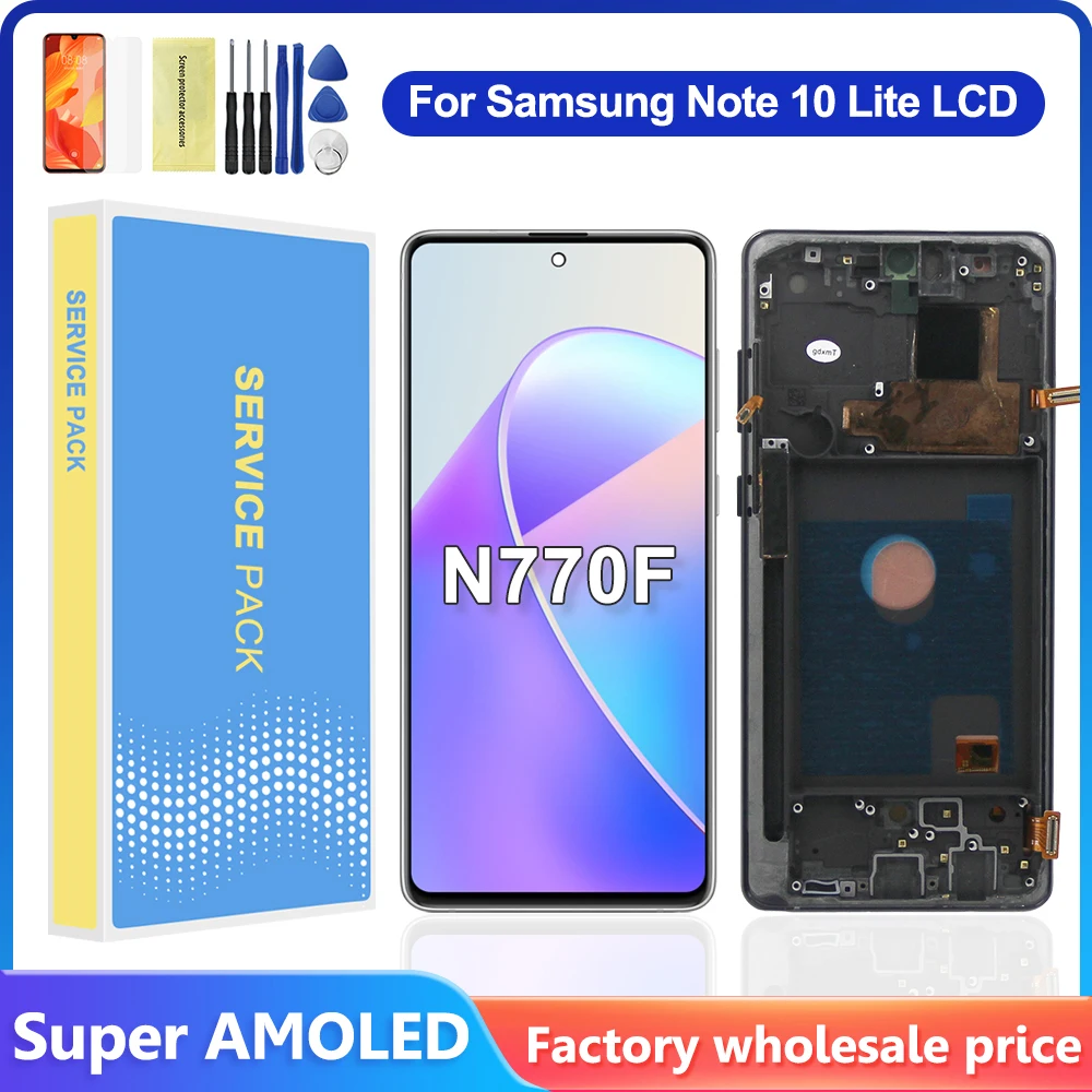 QCQkuGAqHere you can buy Super AMOLED With Frame For Samsung Galaxy Note 10 Lite LCD SM-N770F,N770F/DS Display Touch Screen Digitizer Assembly Replace with free delivery to your post office.