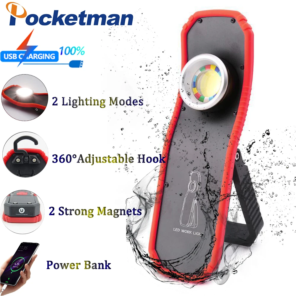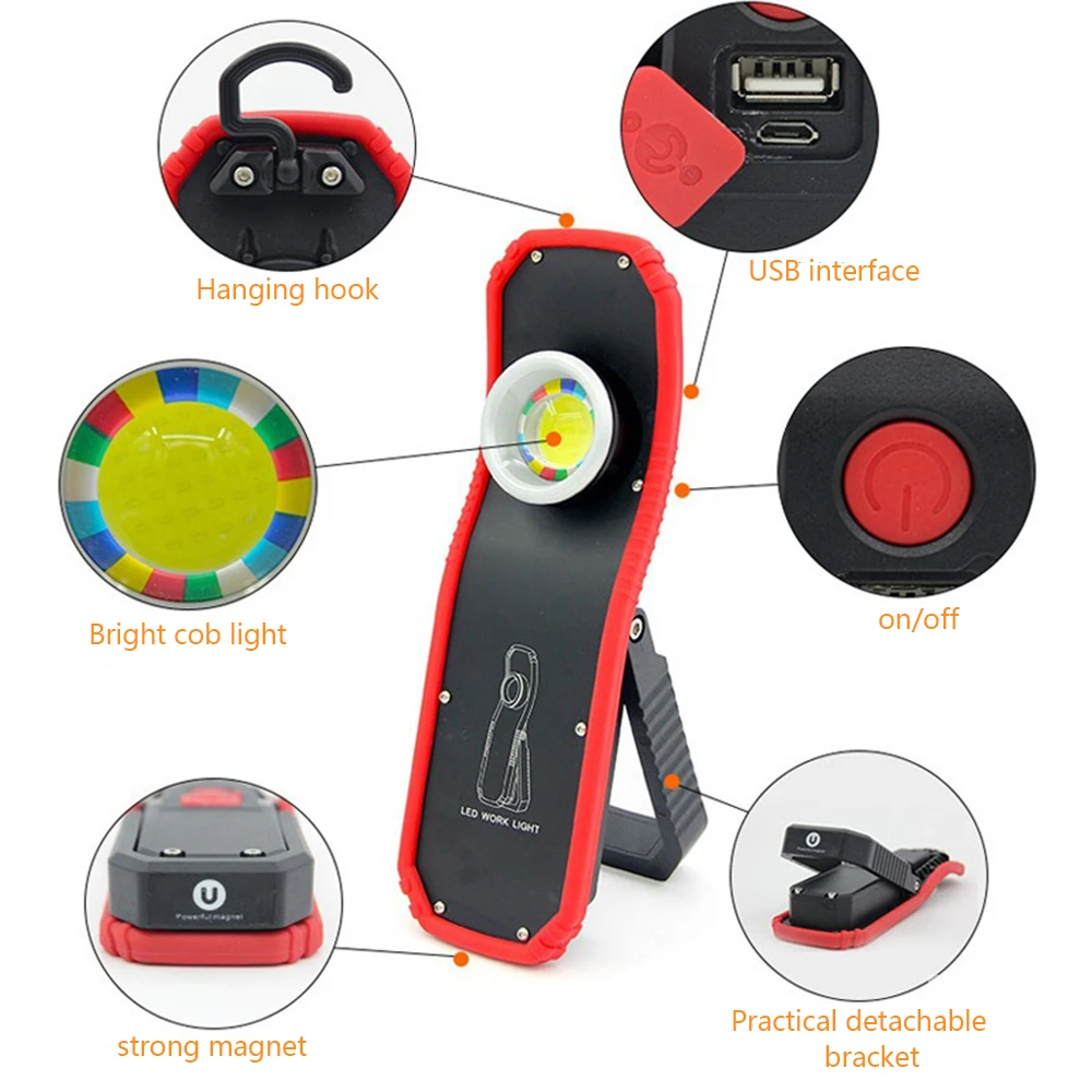 Super Bright Magnetic COB Work Light Auto Repair Light USB Rechargeable Work Lamp Portable Flashlight Hanging Lights Lantern - Купить с бесплатной доставкой