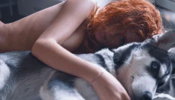 Девушку разбудил пёс, а начинающая зоофилка стала сосать у собаки и слизывать сперму, которая разбрызгалась по сонному лицу