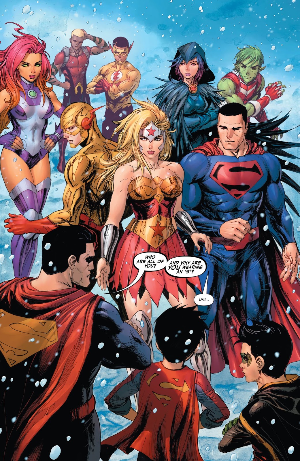 This generation’s “dynamic duo” are slowing developing their relationship and are starting to work together a little bit better; even if they can’t agree on anything. The story itself has a couple of surprises that keeps it from being just another tale of stepping out from under the shadow of their father’s cape. We also finally get an interesting backstory as to what’s going on with the family that’s being held against their will in the first two issues.