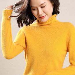Super Warm Pure Mink Cashmere Sweaters and Pullovers Women Winter Turtleneck Solid Color Soft Sweater Female Basic Jumpers