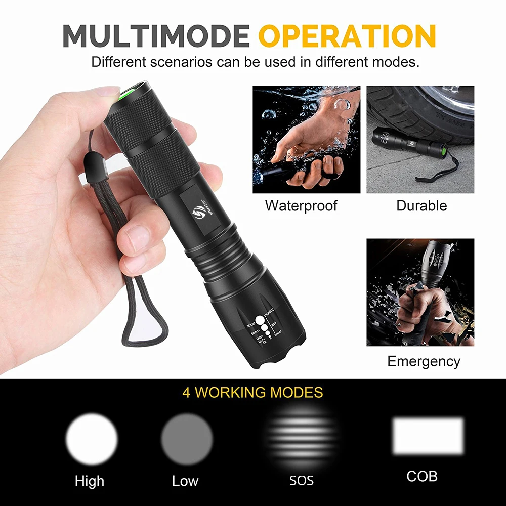 VQJkRgoTUHere you can buy Super bright LED Flashlight With COB Side Light 4 Lighting modes Waterproof LED Torch For camping, adventure,Night Riding with free delivery to your post office.