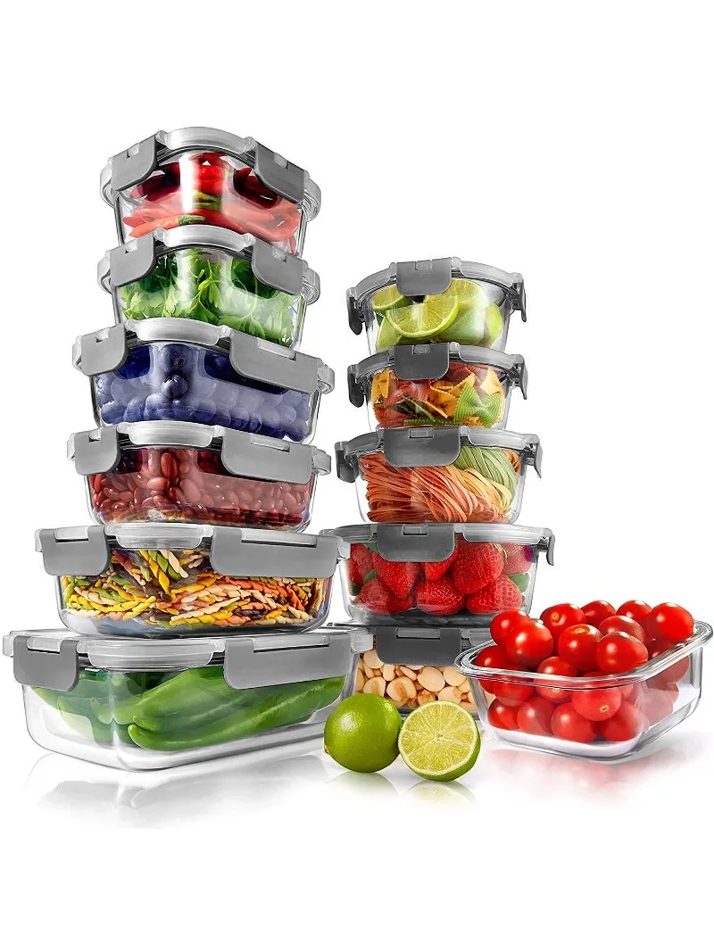 FAjFHlVCHere you can buy Superior Glass Food Storage Containers Set - Stackable Design BPA-free Locking lids (Gray) Glass Containers Capacity with free delivery to your post office.