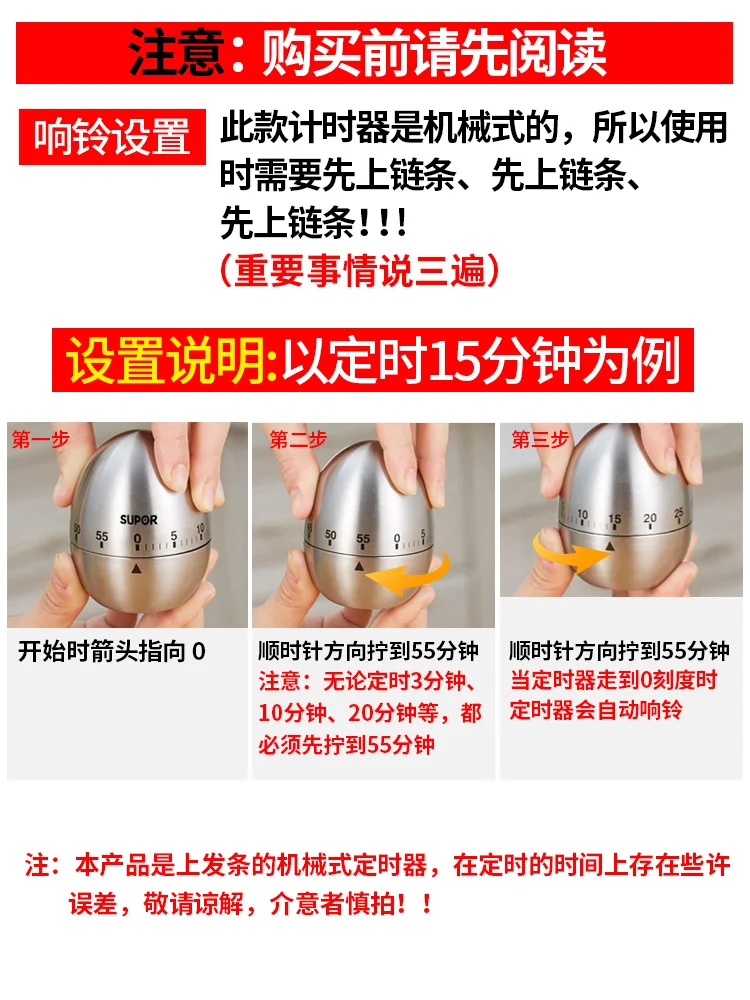 Supor Mechanical Kitchen Timer Reminder Timer Timing Kitchen Tools study timer halloween decoration timer - Купить с бесплатной доставкой