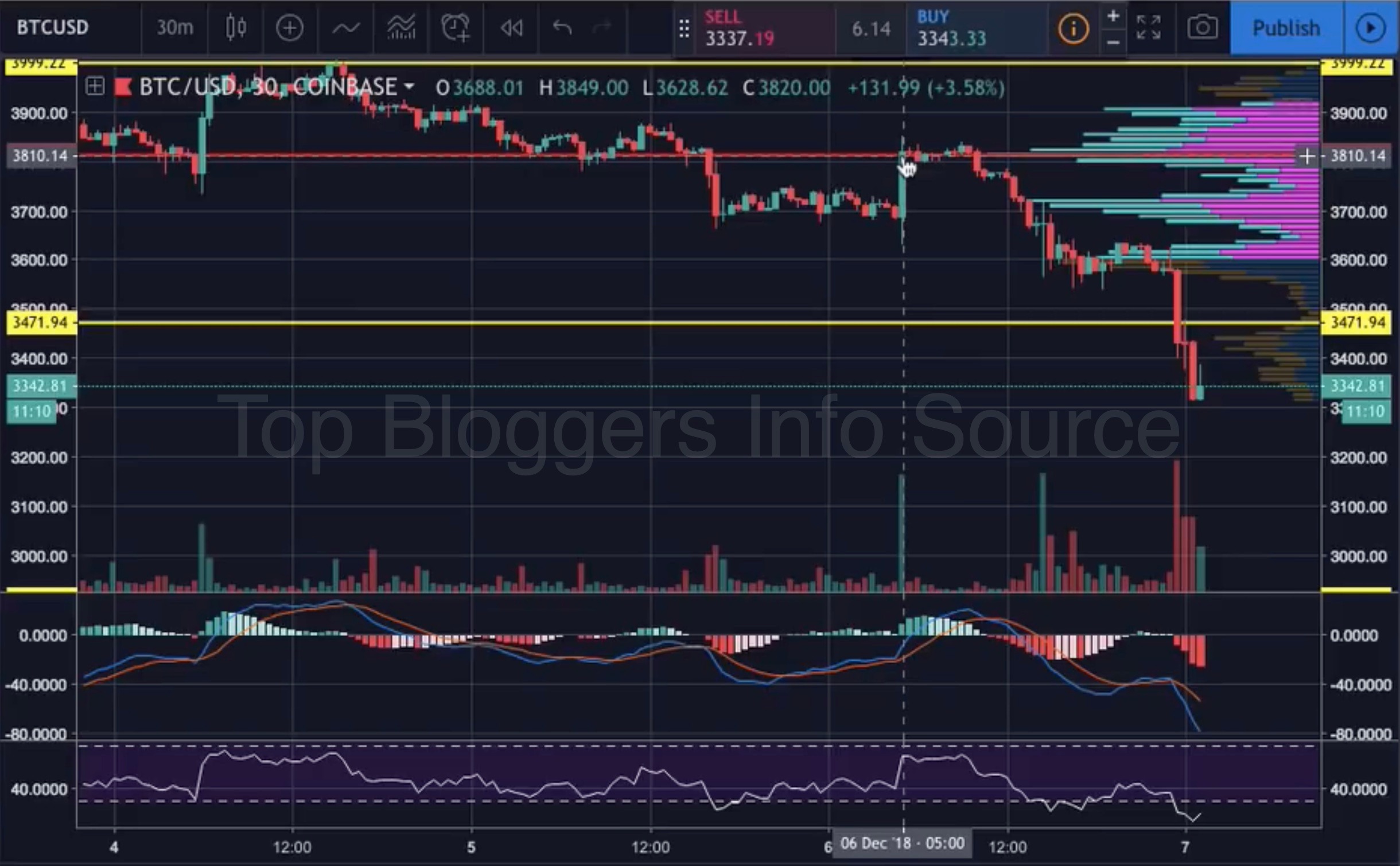 Выход вышеуказанных новостей повлиял на цену, и она ушла ниже основных объёмов торговли с более высокой скоростью, однако сам процесс стартовал раньше. Таким образом, можно проследить манипуляцию, так как очевидно, что определённые люди знали о них до момента публикации. Общим итогом ситуации стал приход цены к уровню ~$3 300.