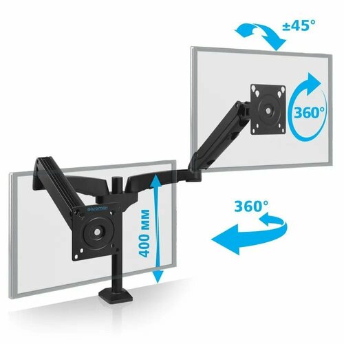 Type d'installation : ordinateur de bureau ; Réglage : pivotement et inclinaison ; Objectif : pour les moniteurs ; Taille VESA : 100 x 100, 75 x 75 ; Compatible en diagonale : du 27 au 40 ; Compatible avec les téléviseurs: 32"; Angle d'inclinaison: 45; Angle de rotation: 360; Distance du mur: n/a; Distance du plafond: n/a; Charge maximale: jusqu'à 20 kg; De plus: possibilité de rotation de l'écran à 360° un moniteur, aussi bien en position verticale qu'horizontale, Système de réglage facile 3D Motion System, une charnière sphérique spéciale vous permet d'ajuster facilement et précisément la position du moniteur, Le support réglable en hauteur vous permettra d'installer le moniteur à la hauteur souhaitée, Trois façons de fixer à la table, Ressort à gaz RESSORT À GAZ Permet un mouvement fluide du moniteur de haut en bas et permet également de fixer le moniteur dans n'importe quelle position intermédiaire Couleur : noir Poids : oui ;Support pour moniteurs LCD/LED 15"-32", max 10 kg, bureau, 6 degrés de liberté, inclinaison ±45°, rotation 360°, depuis la table 400 mm, VESA max 100x100 mm, mouvement vertical haut/bas dans les 230 mm , chemin de câbles, deux options de montage